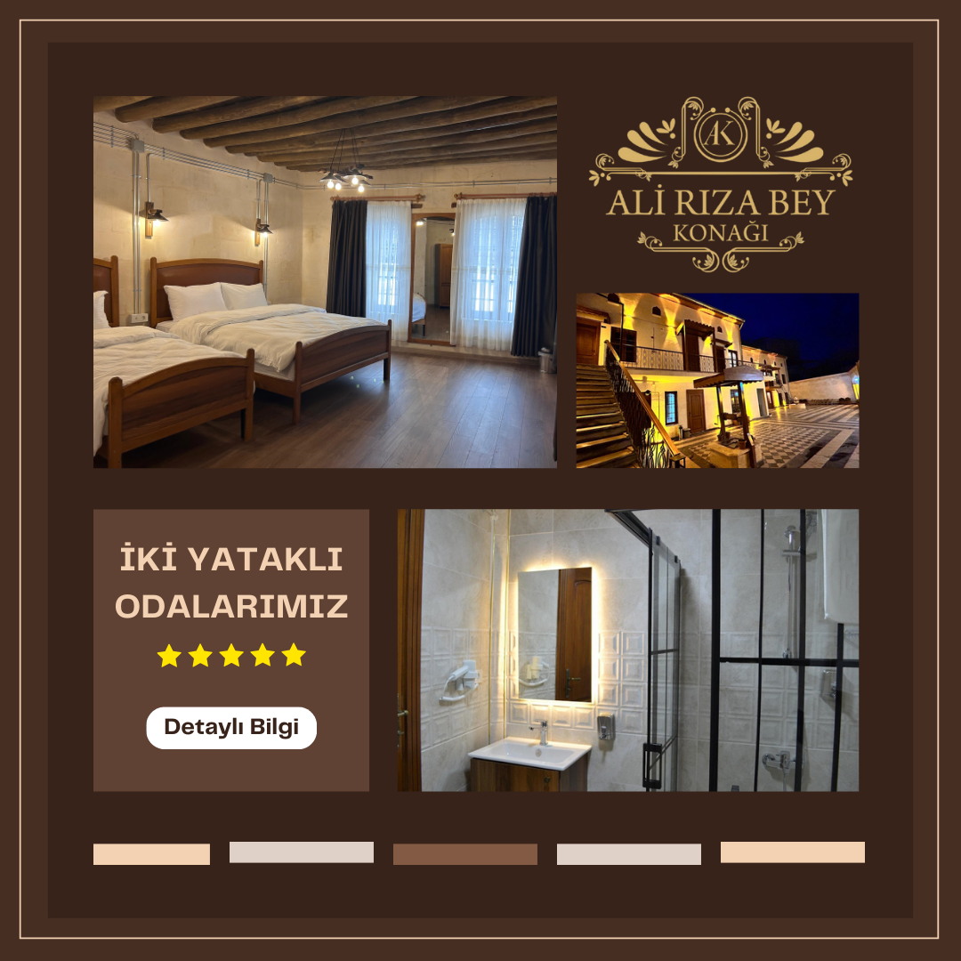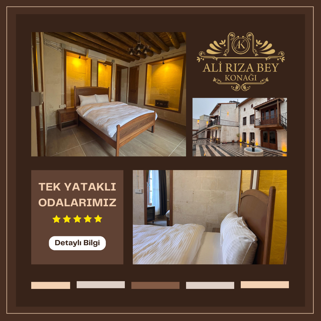 Tarihi Ali Rıza Bey Konağı, geçmişin zarafetini modern konforla buluşturuyor. Tarih kokan odalarında unutulmaz anlar yaşayın! Eşsiz mimarisi ve tarihi atmosferiyle sizi geçmişin göz alıcı dünyasına davet ediyor. Şehrin kalbinde yer alan bu konak, misafirlerine modern konfor sunarken, 19. yüzyıl Osmanlı tarzını da yaşatıyor. Rahat odalarımızda dinlenirken, konağın zarif avlusunda çay eşliğinde keyif yapabilirsiniz. Tarih severler için mükemmel bir durak olan Ali Rıza Bey Konağı, eşsiz konumu sayesinde çevredeki tarihi ve kültürel noktalara kolayca ulaşmanızı sağlıyor. Unutulmaz anılar biriktireceğiniz bu konak, hem romantik tatiller, hem iş gezileri hem de aile tatilleri için ideal bir seçim. Sizi bekliyoruz!